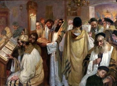 "Jews Praying in the Synagogue on Yom Kippur" by Maurycy Gottlieb